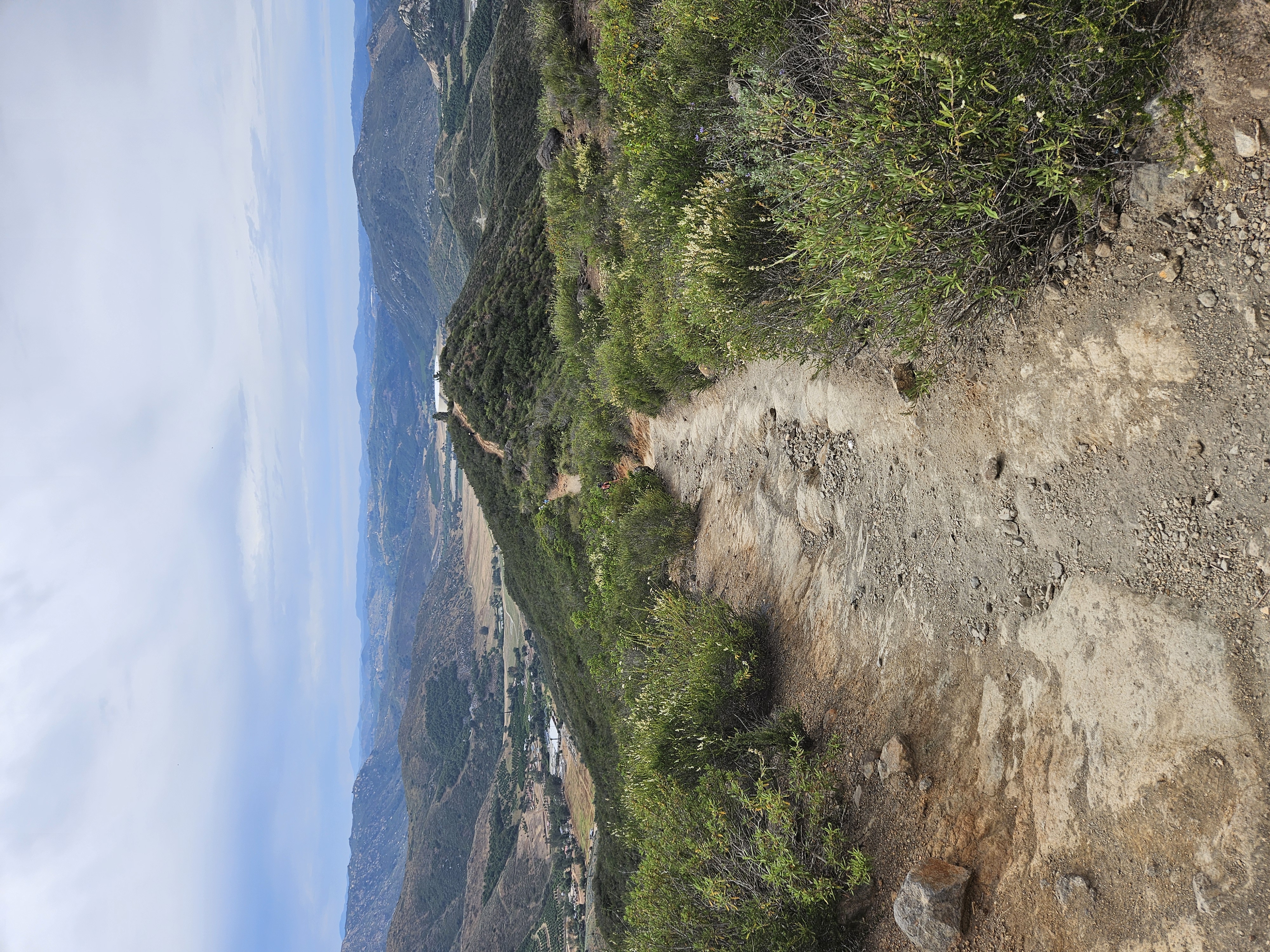 The Plateau is a small mountain preserve just south of Temecula. It peaks around 4,000 feet, but I think the elevation gain from the trailhead to the summit is only about 1,000 feet—Temecula itself sits fairly high, maybe around 2,000 feet. The loop takes about two hours if you go the whole way. It's a popular trail, often filled with hundreds of hikers of all ages. Some of the older regulars clearly walk it every day—and they often give me a run for my money.